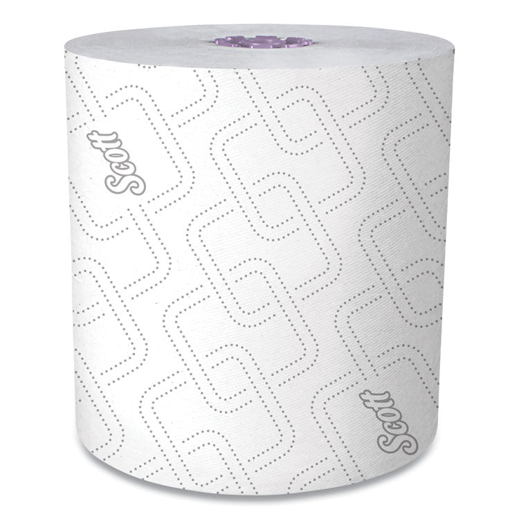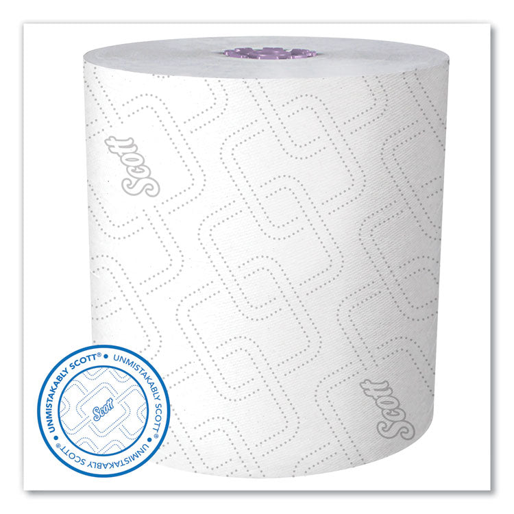 Scott® Essential High-Capacity Hard Roll Towels offer superior performance and efficiency, designed to meet the demands of busy restrooms. Each roll measures 8 inches in width and provides an impressive 950 feet of high-quality, unperforated paper towel, ensuring long-lasting use. Featuring the new Elevated Scott® Design and unique Absorbency Pockets™, these towels are preferred 4 to 1 for a premium restroom experience. Ideal for Purple Core Dispensers, they provide quick water absorption and help reduce waste. Perfect for high-traffic areas, these towels meet EPA requirements for post-consumer waste and are FSC® and ECOLOGO® certified, making them a responsible choice for the environment.