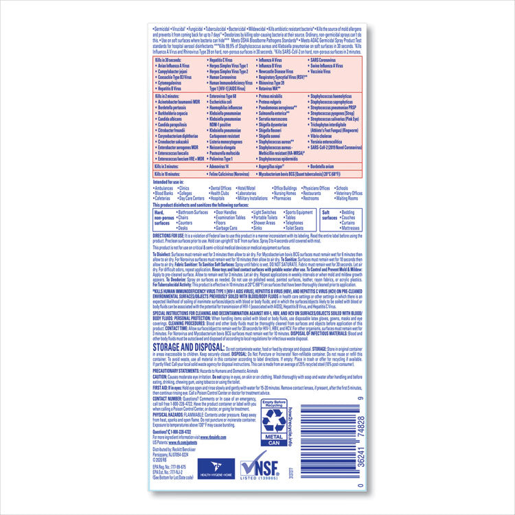 - Compliance Standards: Meets OSHA Bloodborne Pathogens Standards and AOAC Germicidal Spray Product Test standards.