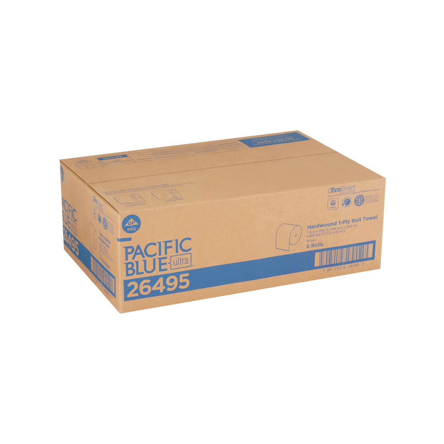 The GP PRO Pacific Blue® Recycled Paper Towel Roll (26495) is a high-capacity, eco-friendly towel solution designed for busy facilities that need long-lasting performance and reduced maintenance. Each roll delivers 1,150 feet of durable brown paper, providing extended use and fewer changeouts. The one-at-a-time, touchless dispensing system helps reduce waste and prevent cross-contamination, making it ideal for restrooms, kitchens, and high-traffic areas. Made with at least 50% post-consumer recycled fiber, these towels support sustainability goals and meet stringent EPA and LEED standards.